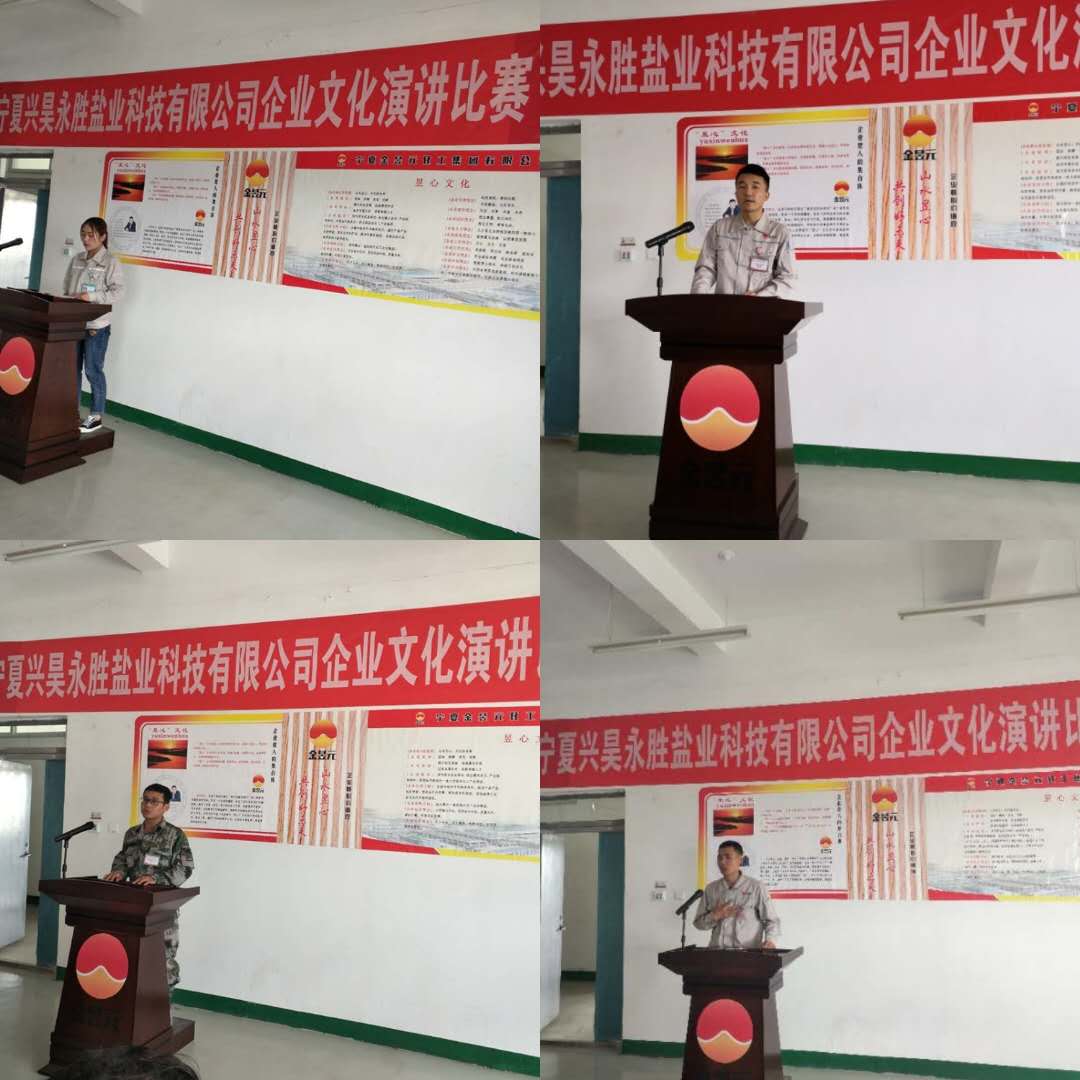 2019年5月30日,寧夏興昊永勝鹽業(yè)科技有限公司舉辦“提升職業(yè)化素養(yǎng)”主題演講比賽。鹽業(yè)公司總經(jīng)理尚繼榮、副經(jīng)理莊濤、綜合科科長(zhǎng)張偉、安環(huán)生產(chǎn)科科長(zhǎng)岳尚華及50余名員工代表參加。同時(shí),還特邀片區(qū)副總經(jīng)理馬建東、黨支部副書記王志杰出席活動(dòng)。
