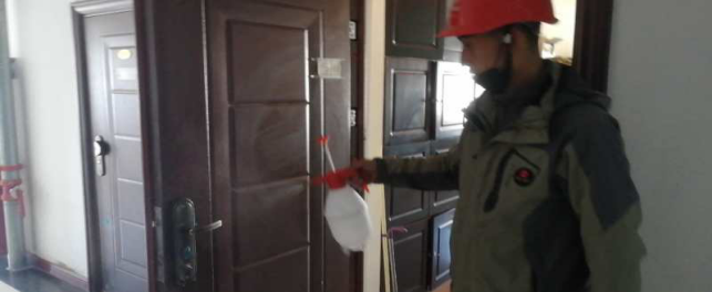 在宿舍,檢查留宿人員、進(jìn)行衛(wèi)生消毒等“疫情”防控工作。