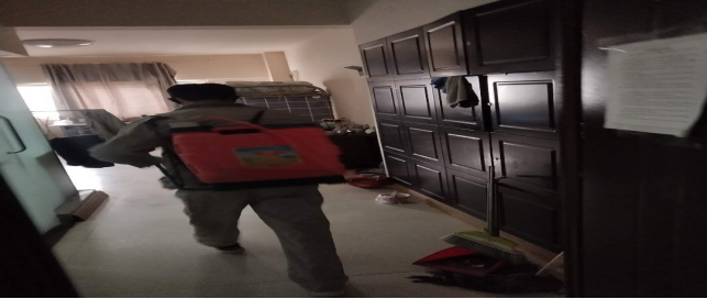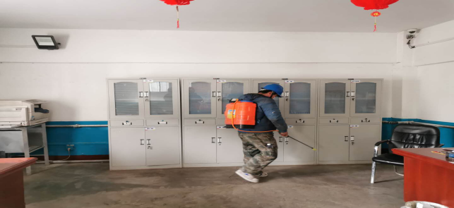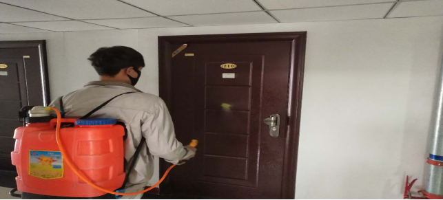 對(duì)宿舍消毒。