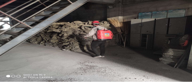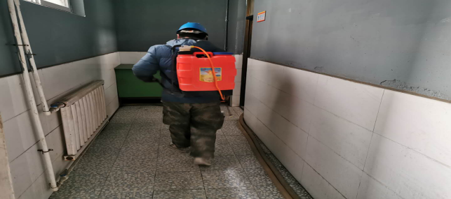 對(duì)廠區(qū)衛(wèi)生間消毒。