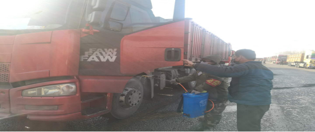 在園區(qū)南門,他們的堅守讓我們工作便多了一份安心。今日截止下午17時整,他們檢測、消毒、登記車輛  輛,人員  人,其中銷售拉用水泥車輛   輛,熟料車輛   輛,車輛正常,以及隨行人員  體溫均在正常范圍。