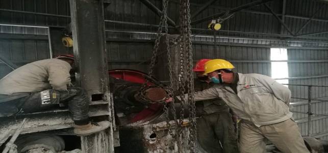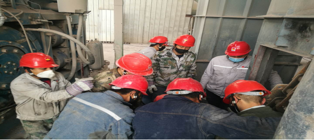 在窯頭收塵器拉鏈機,他們及時拆卸拉鏈進行更換,校正拉鏈平衡度。整個過程緊張有序,忙而不亂。無論是公司領導還是一線職工,大家都全身心投入到檢修戰(zhàn)役中。