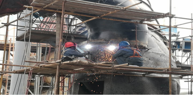 乒乓鐺鐺敲打聲此起彼伏,電焊、氣割電火花閃爍不斷,臉上的污漬描繪著勞動的色彩,身上的汗水澆灌著希望的花朵,一邊是機器轟隆運轉,承載無數(shù)人的夢想,一邊是工人緊鑼密鼓,馬不停蹄的設備檢修……這就是資源循環(huán)公司檢修正在緊張進行的現(xiàn)場。