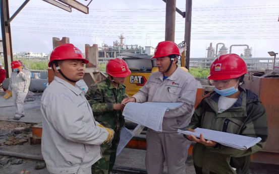 檢修除抓工期進(jìn)度、質(zhì)量外,最為關(guān)鍵的就是安全了。各單位負(fù)責(zé)辦理動(dòng)火作業(yè)的檢修師傅們拿著一張張動(dòng)火作業(yè)票,走到總負(fù)責(zé)安全副總經(jīng)理梁軍、安環(huán)生產(chǎn)科科長(zhǎng)張振忠和安環(huán)主管吳琳跟前,用手比劃著、點(diǎn)頭示意著?催@背影,在空曠吵雜的工作環(huán)境中,我們?cè)缫蚜?xí)慣用手語(yǔ)交流。
