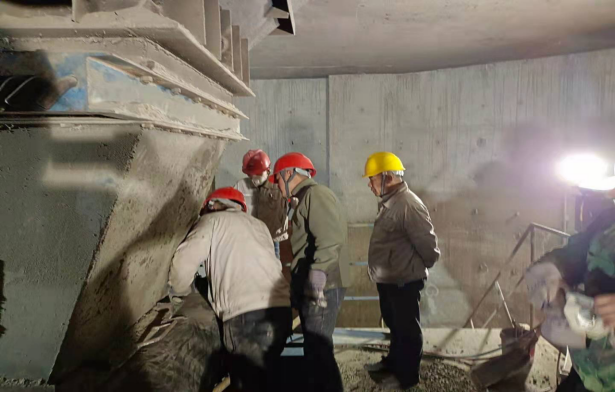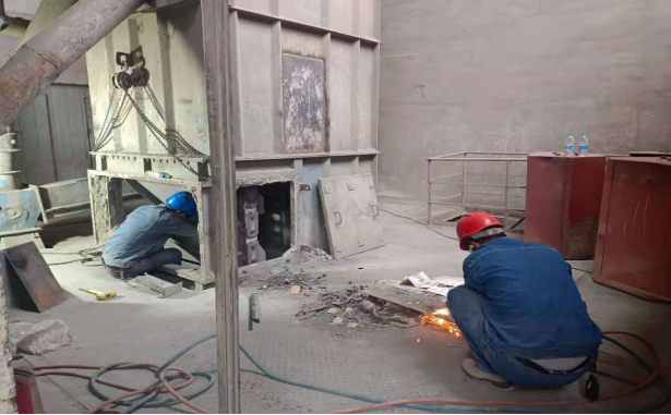 水泥磨檢查更換隔倉板、堆焊輥壓機輥面,技改v選入口分料裝置、調整v選揚料板、穩(wěn)料倉,裝置長要求維修班全體人員在確保人員安全的前提下務必按時完成所有檢修項目,并調試運行。雖然此次搶修任務時間緊迫,但安全永遠是排在第一位。在工作前,按照屬地管理原則,層層對檢修作業(yè)人員進行安全技術交底,要求檢修人員臨邊作業(yè)時必須要戴好安全帶,帶好耳塞和口罩,每位作業(yè)人員進行危險源辨識完成后才能進行作業(yè)