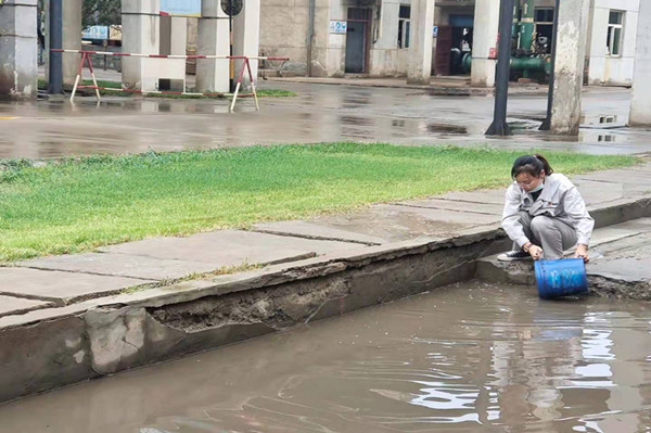 無(wú)論刮風(fēng)還是下雨,天氣有多惡劣 ,總有一群人,她們始終是堅(jiān)守在崗位一線的最美員工,那就是從事質(zhì)檢分析的女工們。其實(shí)在四班三倒的日子里,她們最頭疼的不是工作忙,而是遇見(jiàn)雨雪天氣,特別是下雨天時(shí),出門(mén)去現(xiàn)場(chǎng)取樣就變得困難了很多,有時(shí)候?yàn)榱巳臃奖,她們寧愿選擇不打傘、不穿雨衣,一趟下來(lái),衣服和鞋子差不多全濕透了。這不,那一晚她們就迎來(lái)了一夜的雨,從小雨逐漸變成中雨,聽(tīng)著外面的雨聲,她們?nèi)缱槡,萬(wàn)一變成暴雨可怎么辦,雨一直不停又怎么辦,外面的雨已經(jīng)越下越大,但到了取樣時(shí)間她們不畏困難做好防護(hù)準(zhǔn)時(shí)到現(xiàn)場(chǎng)取樣,她們堅(jiān)信遇到再大困難也要戰(zhàn)勝困難,去完成自己的工作。終于等到了天亮,雨也停了下來(lái),等待她們的就是清理積水?粗敲匆淮笃e水,沒(méi)有抽水泵,這讓她們犯起了難,思考了片刻,她們決定用最老土的辦法使用水桶、笤帚、簸箕清理積水,說(shuō)干就干,水比較深,只好換上了雨鞋,大家分工明確,掃地掃,鏟地鏟,提得提,倒得倒,一會(huì)的功夫積水已經(jīng)少了很多,在大家緊密的配合下,最終把坑里積水全部清理了出去。