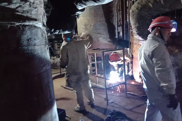 此時隆隆的吊車聲響徹在檢修現(xiàn)場。檢修作業(yè)最關(guān)鍵的時刻到來了,只見維修班長熟練用割槍切割著設(shè)備與框架的支點,通紅的鐵水四處飛濺不時落在他的衣服上,留下黑色的小孔。他也顧不得這些,迅速完成了設(shè)備與框架的切割,其他人員也各司其職忙著斷口。隨著吊鉤的慢慢升起設(shè)備輕松與框架分離,由于空間狹小吊臂的活動空間有限,吊裝作業(yè)顯得異常的緩慢,這對長時間在寒冷的室外作業(yè)人員是個極大的考驗,伴隨著指揮人員最后的口令下達,舊的再沸器設(shè)備被緩緩地放到地上。此時已過中午時分,雖然大家早已饑腸轆轆,但是每個人的臉上洋溢著笑容,因為他們深深的懂得,只有經(jīng)歷了艱辛的拼搏,才會收獲成功的喜悅。