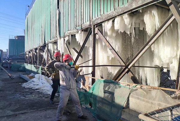 走進現(xiàn)場,我們看到的是工友們忙碌的身影,在嚴寒下,那一張張掛著“兩鬢斑白”和“爬滿灰塵”的臉龐;讓我們看到了他們對待檢修清冰作業(yè)精、專、細的工作態(tài)度。平時工作中他們沒有太多的言語,只是埋頭苦干,不敢有絲毫懈怠,也不能有半點疏忽。是我們最樸實無華的一線工友,也是大家常說的,最可愛的人,我們身為金昱元這個大家庭的成員,這是我們的義務和責任,工友們早已將“責任”二字深深地刻在檢修作業(yè)的每一個環(huán)節(jié)。為保證檢修清理作業(yè)質量,他們沒有在寒冷面前選擇草草了事,依然一絲不茍的檢查著檢修清理工作的每處細節(jié),一雙雙沾滿油污被冰水打濕的衣袖,無不彰顯著一種敬業(yè)精神。清理檢修合格的設備,為了配合裝置的安全平穩(wěn)運行,為了現(xiàn)場設備冷卻塔填料的完好,為了循環(huán)水系統(tǒng)的正常降溫,為了現(xiàn)場工藝指標的合格,他們忘卻了勞累,忘卻了休息,用他們勤勞的雙手和吃苦耐勞的拼搏精神在檢修清理現(xiàn)場忙碌著。