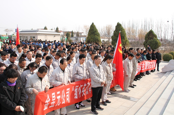 烈士紀念碑巍然聳立,烈士陵園內(nèi)莊嚴肅穆,公司黨員代表在烈士紀念碑前,整齊列隊、靜默肅立;顒訌恼犆C立、行注目禮開始,集團公司黨委副書記王立軍宣布祭掃活動開始,并代表公司向烈士紀念碑敬獻花籃,參加活動全體人員默哀一分鐘。全體黨員重溫了入黨誓詞,共同學習了革命烈士的英勇事跡。
