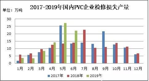 圖2 2017-2019年國內(nèi)PVC企業(yè)檢修損失產(chǎn)量