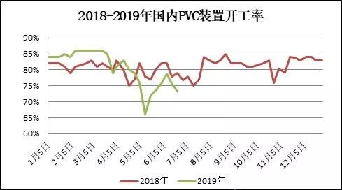 圖4 2018-2019年國內(nèi)PVC裝置開工率