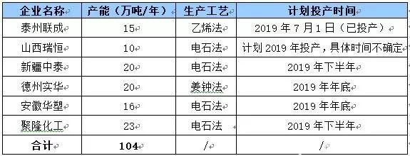 表1 2019年上半年新增PVC產(chǎn)能