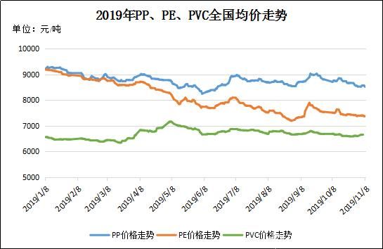 圖3 2019年P(guān)P、PE、PVC全國均價(jià)走勢