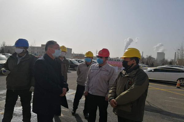 金永靈市長(zhǎng)按常規(guī)程序進(jìn)行測(cè)量體溫和登記信息,并翻閱出入大門人員信息登記臺(tái)賬。他詳細(xì)了解了集團(tuán)公司疫情防控工作,總裁葉森和黨委副書記兼工會(huì)主席王立軍逐一回答。