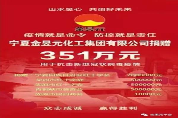 面對(duì)疫情,我們每個(gè)人都在盡自己最大的努力,金昱元也不例外。就如董事長(zhǎng)代良云所說(shuō):“企業(yè)做得越大,就必然要去承擔(dān)更大的社會(huì)責(zé)任,創(chuàng)造更大的社會(huì)價(jià)值!苯痍旁瘓F(tuán)也是這樣做的,疫情當(dāng)前,金昱元集團(tuán)用實(shí)際行動(dòng)踐行社會(huì)責(zé)任和使命擔(dān)當(dāng),向自治區(qū)紅十字會(huì)、吳忠市紅十字、固原市紅十字會(huì)、青銅峽市慈善會(huì)、青銅峽市邵剛鎮(zhèn)、青銅峽鎮(zhèn)、固原市工業(yè)商業(yè)聯(lián)合會(huì)共捐贈(zèng)373萬(wàn)元。同時(shí)無(wú)償向固原市、吳忠市、青銅峽市、靈武市、中寧縣、同心縣、涇源縣等區(qū)內(nèi)118家機(jī)關(guān)、學(xué)校、鄉(xiāng)鎮(zhèn)、企事業(yè)單位捐贈(zèng)消毒液原液近400噸。