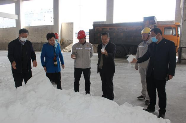 王紫云副主席一行先后到固原片區(qū)展廳、中控室、鹽倉(cāng)、廠區(qū)等進(jìn)行實(shí)地查看。集團(tuán)公司副總裁兼片區(qū)總經(jīng)理喬冠榮就片區(qū)疫情防控、復(fù)工復(fù)產(chǎn)、生產(chǎn)經(jīng)營(yíng)等情況進(jìn)行了匯報(bào)。