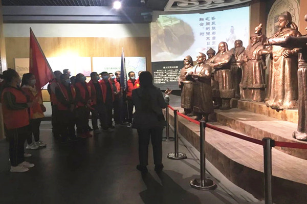 黨旗與金昱元旗幟高高飄揚,黨員們身著紅色志愿者馬夾,手持五星紅旗,排著整齊的隊伍接受防疫檢查。展覽廳里,大家認真聆聽古靈州歷史文化、吳忠革命史講解,或駐足細心觀賞歷史文物,或三五一群交流體會。大家悉心領略地方文化史,回顧紅色歷史,緬懷革命先烈,汲取前行力量。恰逢明年是中國共產(chǎn)黨建黨100周年和金昱元集團建企30周年,全體黨員重溫了入黨誓詞,黨支部書記向全體黨員分享了30年來企業(yè)沐浴改革開放春風,在建設、改革、發(fā)展過程中的故事和取得的成就。
