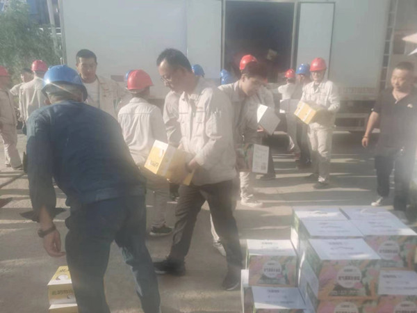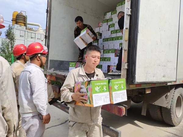 工作人員將防暑品送到生產(chǎn)一線,將濃濃關(guān)愛送到員工們手中,員工們在酷熱的夏天如飲甘泉,神清氣爽。