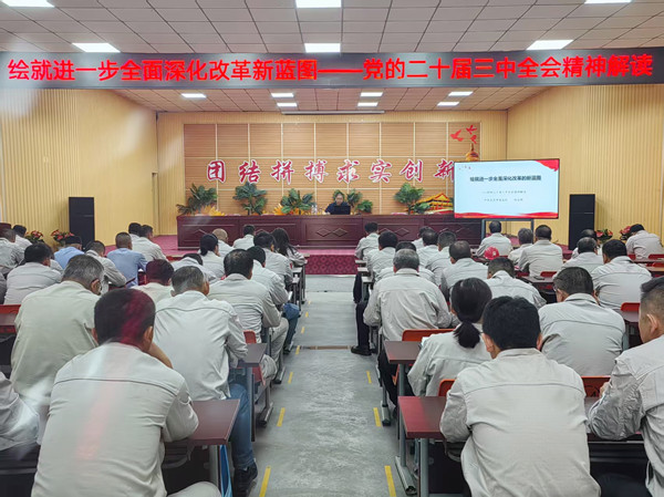 為深入學(xué)習(xí)貫徹黨的二十屆三中全會(huì)精神,切實(shí)把思想和行動(dòng)統(tǒng)一到全會(huì)決策部署上,促使黨員干部認(rèn)真領(lǐng)會(huì)習(xí)近平總書(shū)記關(guān)于全面深化改革新思想、新觀點(diǎn)、新論斷,深刻把握改革主題、重大原則和舉措,6月6日,寧夏金昱元化工集團(tuán)股份有限公司黨委組織開(kāi)展“繪就進(jìn)一步全面深化改革新藍(lán)圖——黨的二十屆三中全會(huì)精神解讀”主題黨課學(xué)習(xí)。本次黨課由中共吳忠市委黨校鄭自明教授主講。