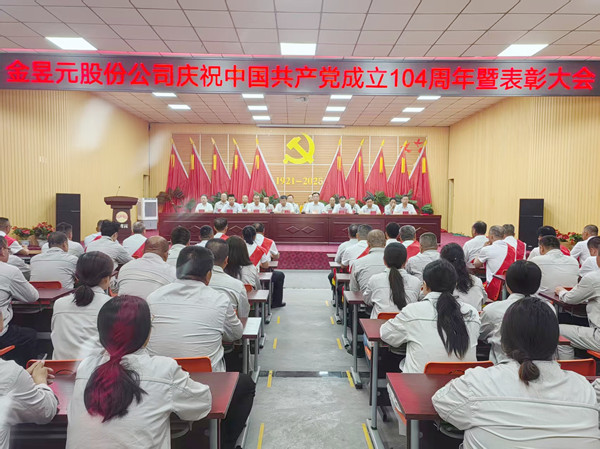 在中國(guó)共產(chǎn)黨建黨節(jié)到來(lái)之際,6月27日,寧夏金昱元化工集團(tuán)股份有限公司召開慶祝中國(guó)共產(chǎn)黨成立104周年暨表彰大會(huì)。