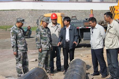 2014年公司領導現(xiàn)場指導為部隊暖氣管道的安裝工作